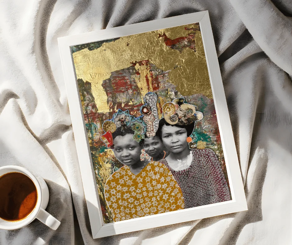 Bold, beautiful, and deeply human a portrait celebrating connection, strength, and the quiet power of women together. Vivid azure tones against warm, textured layers create something both striking and deeply felt.
